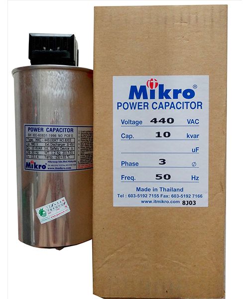 Tụ bù Mikro xuất xứ: Malaysia . Là loại tụ bù với ưu thế về chất lượng ổn định, giá cả cạnh tranh, được các nhà thầu tin dùng.